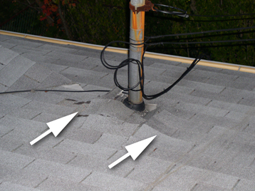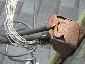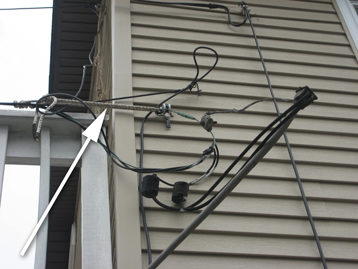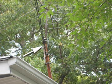 TV antenna secured to electric mast. Don't touch the TV during a storm!