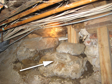 Major floor slope was noted in this house. Inspection of the basement shows the reason.