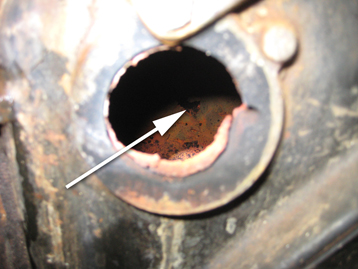 Side vent exhaust improperly run. Note how close to the ground the pipe is.